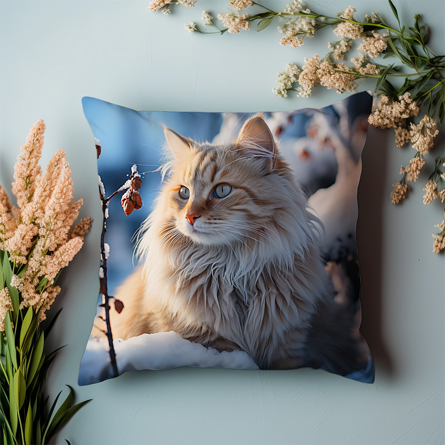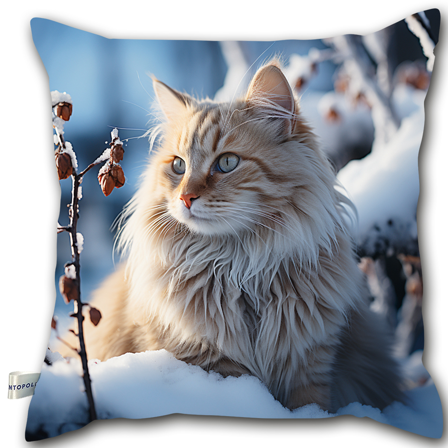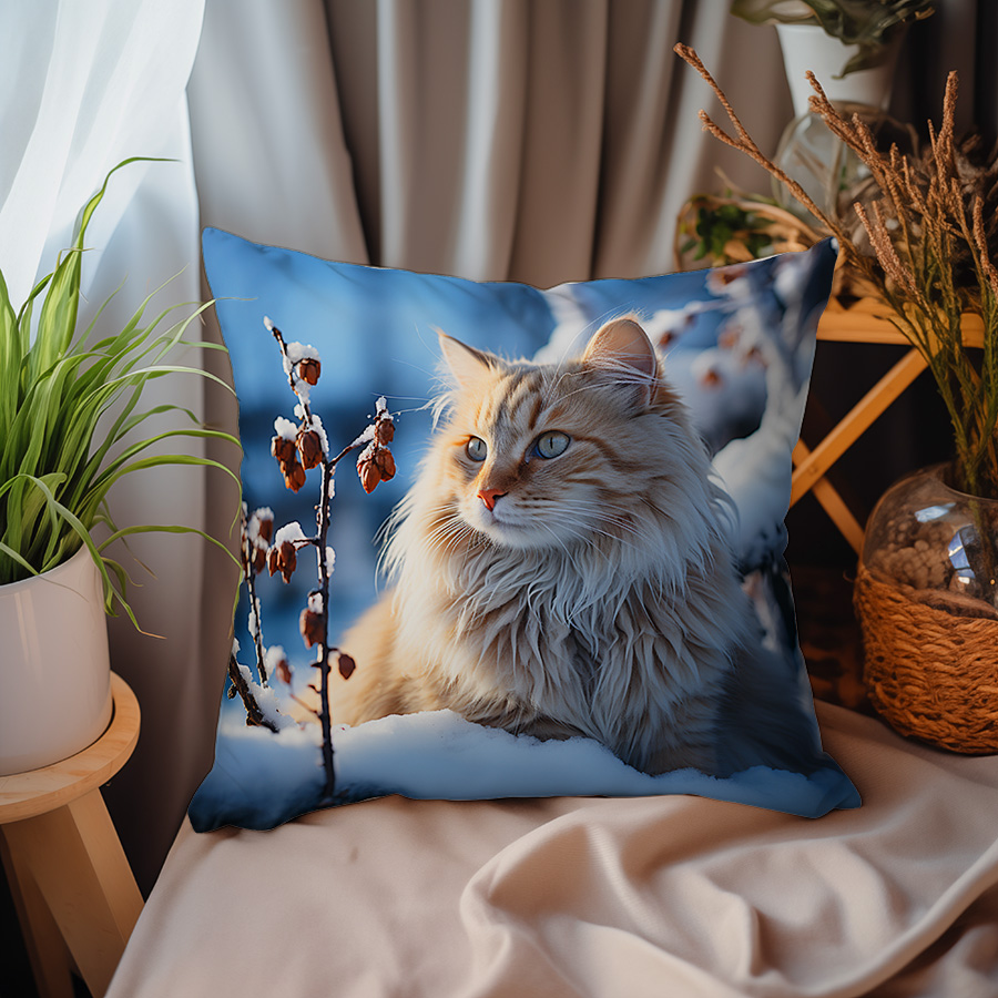 Poduszka – Biały kot na zimowym tle