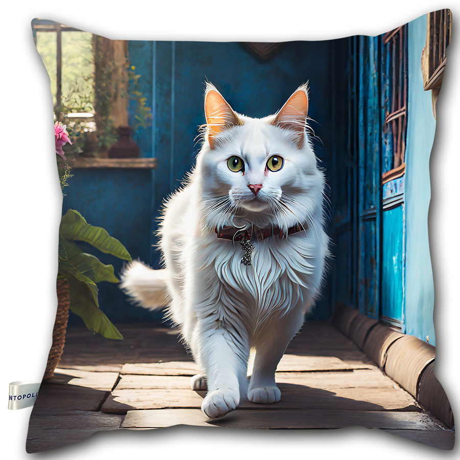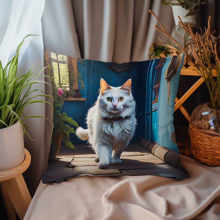 P02 - Poduszka - Biały kot w pokoju