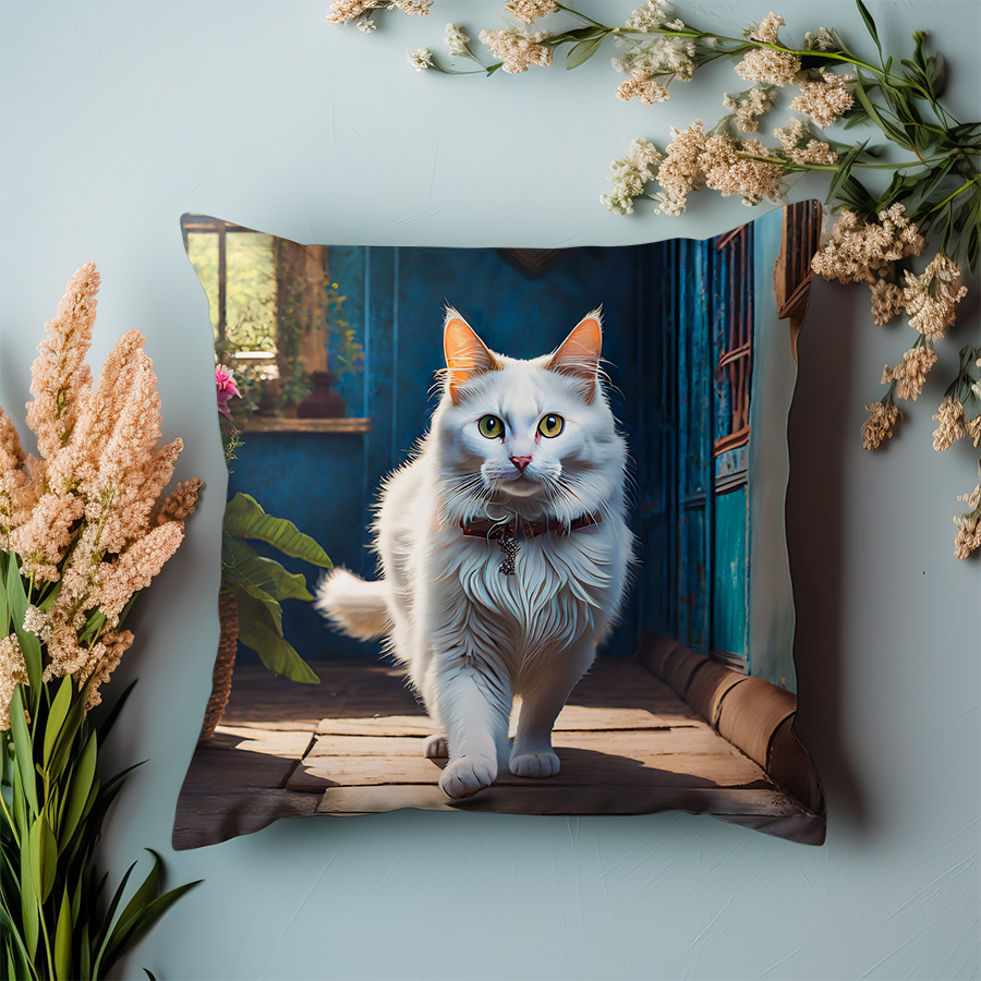 Poduszka – Biały kot w pokoju