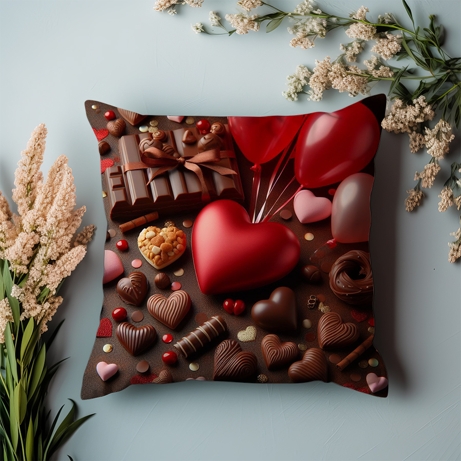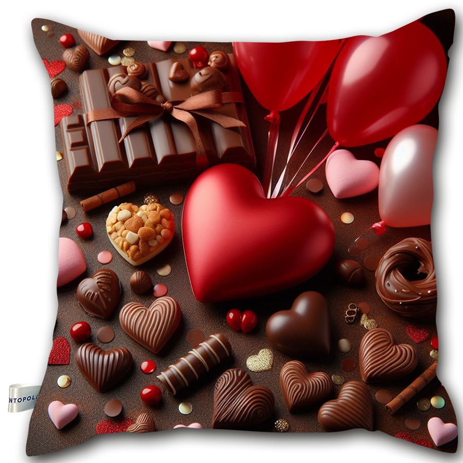 Poduszka na walentynki – Serce, czekoladki i balony