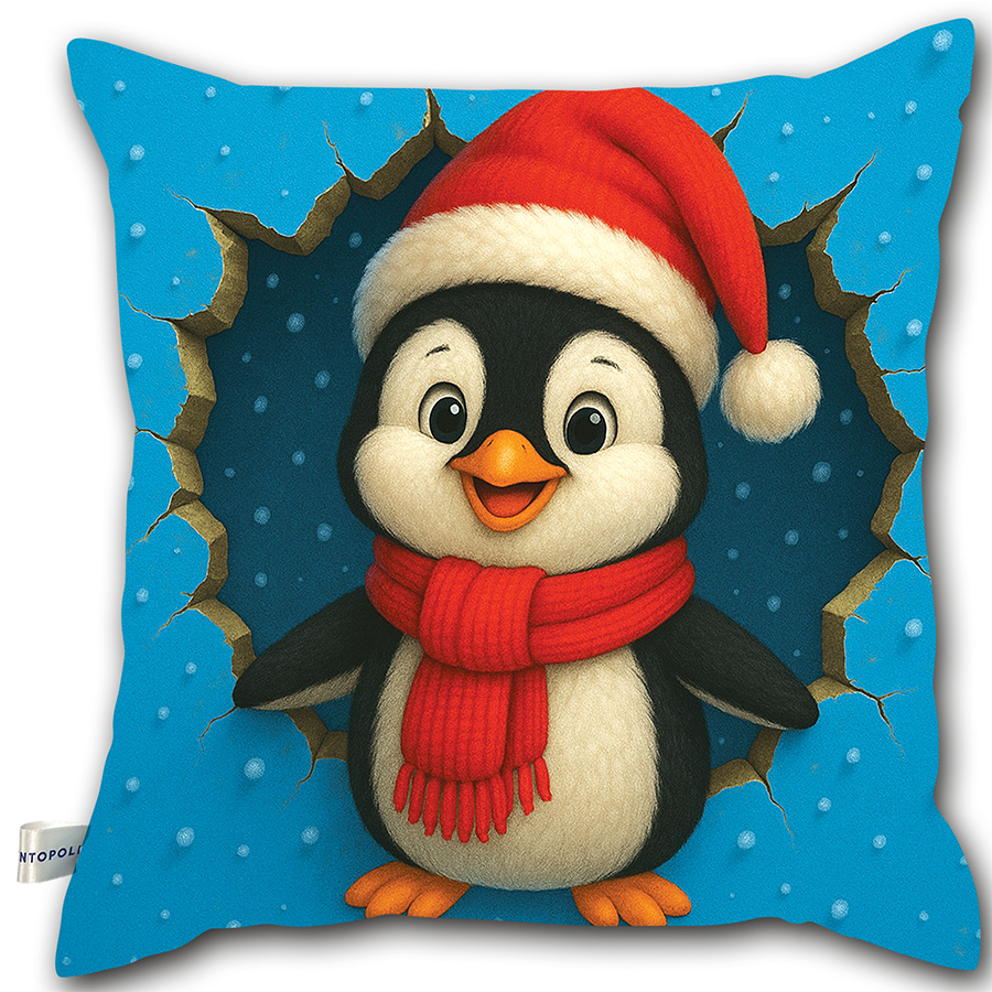 🛏️ Poduszka z Pingwinem – Mikołaj 🛏️