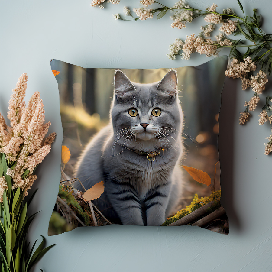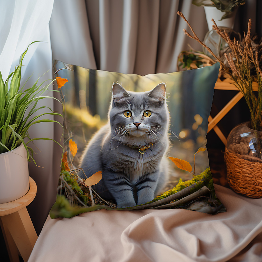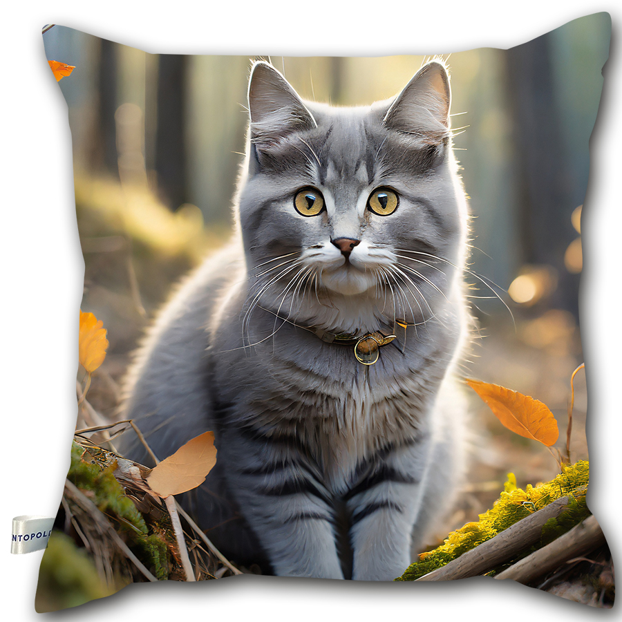 Poduszka – Szary kot w liściach